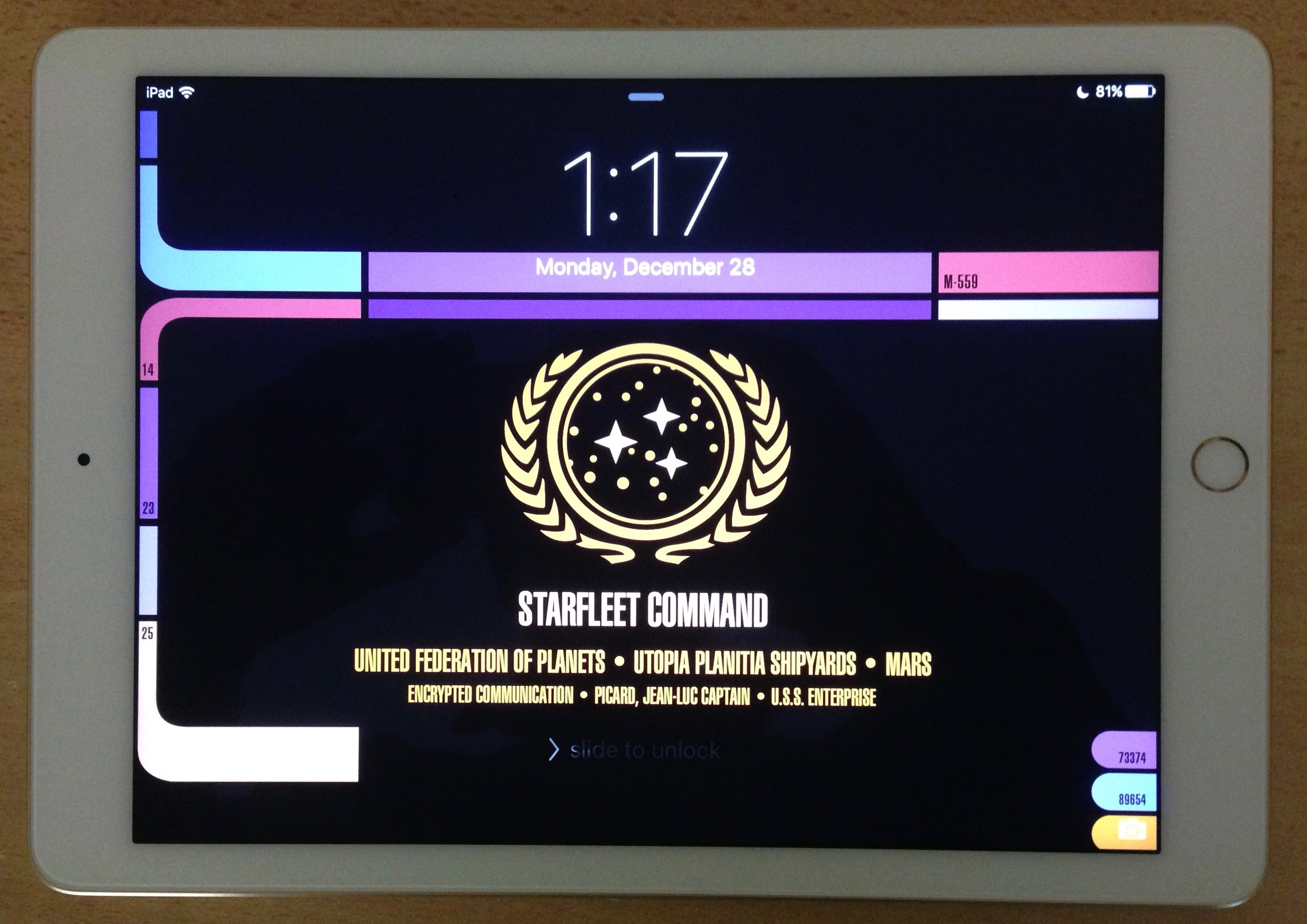 And that is how we had the Great Electronic Shuffle in our house. Everyone got a new iPad, though only one new device actually came into the house. All three of us are delighted with our new toys, especially my younger wife with her aging eyes who hopefully is not reading this post. If she is…thank you, sweetie, for giving me not only my wonderful new iPad but also the most awesome lock screen wallpaper ever.